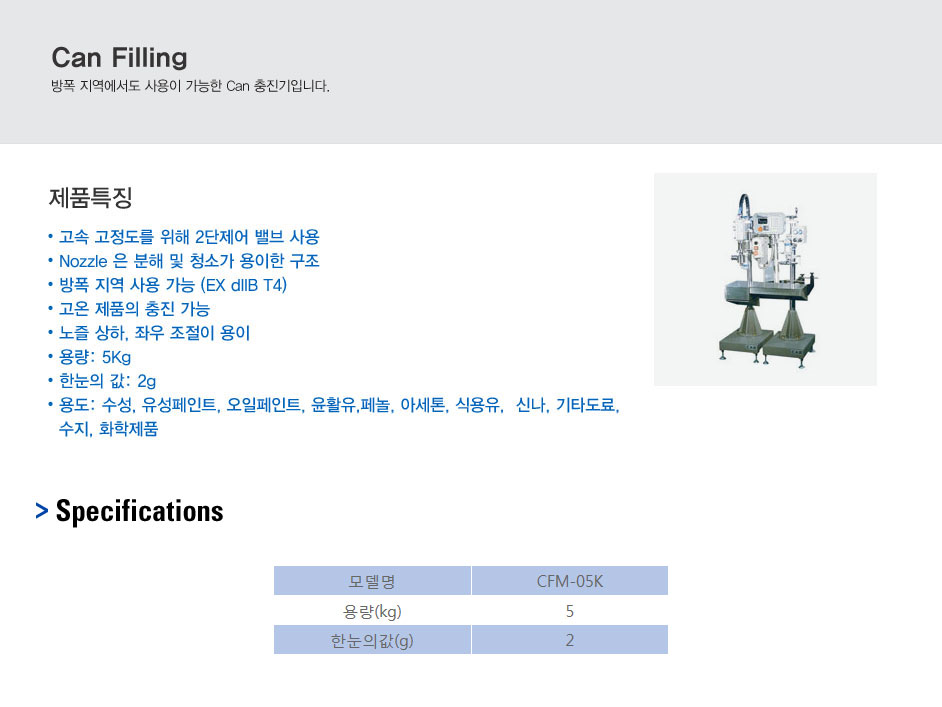 방폭 지역에서도 사용이 가능한 Can 충진기입니다.