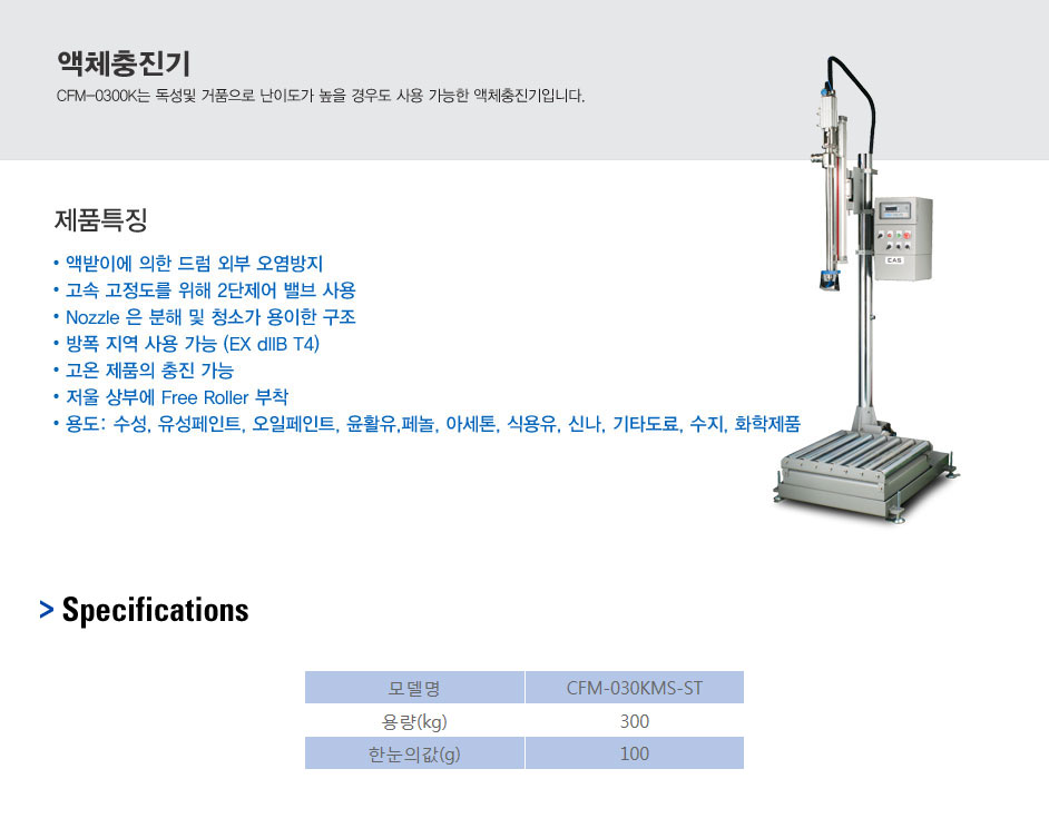 CFM-0300K는 독성및 거품으로 난이도가 높을 경우도 사용 가능한 액체충진기입니다.