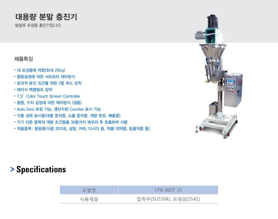 대용량 포장에 적합한 분말 충진기입니다.