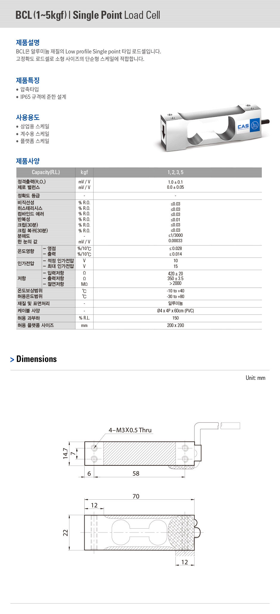 알루미늄 재질의 Low profile Single point 타입 로드셀