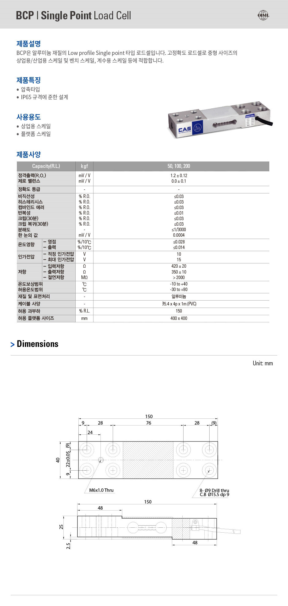 알루미늄 재질의 Low profile Single point 타입 로드셀