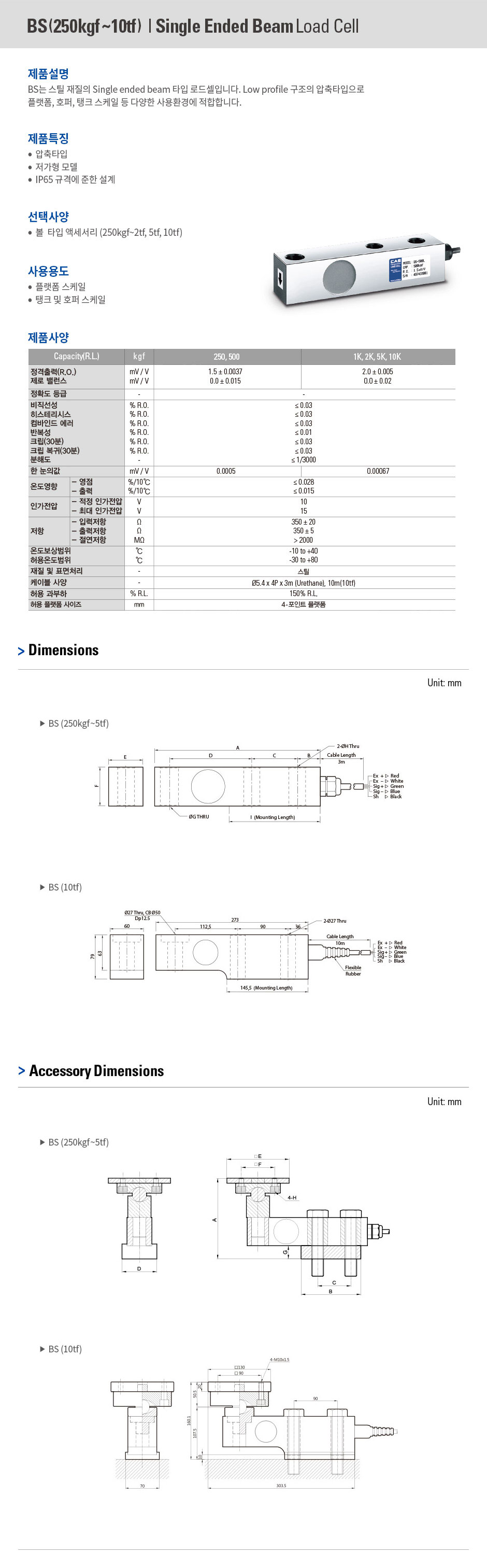스틸 재질의 Single ended beam 타입 로드셀