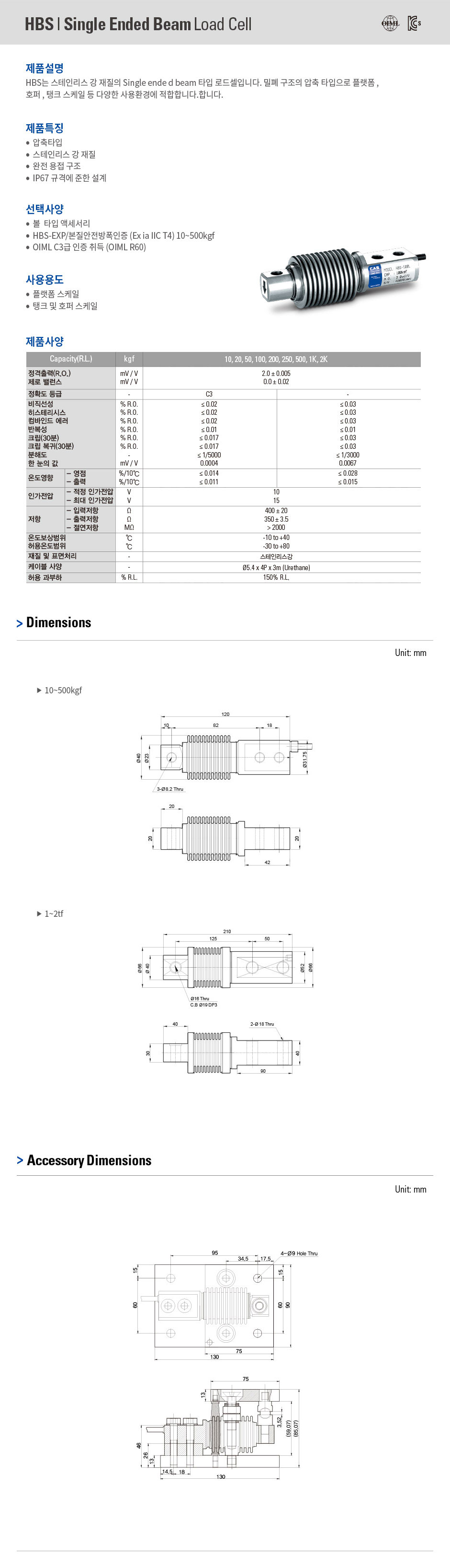 스테인리스 강 재질의 Single ende d beam 타입 로드셀