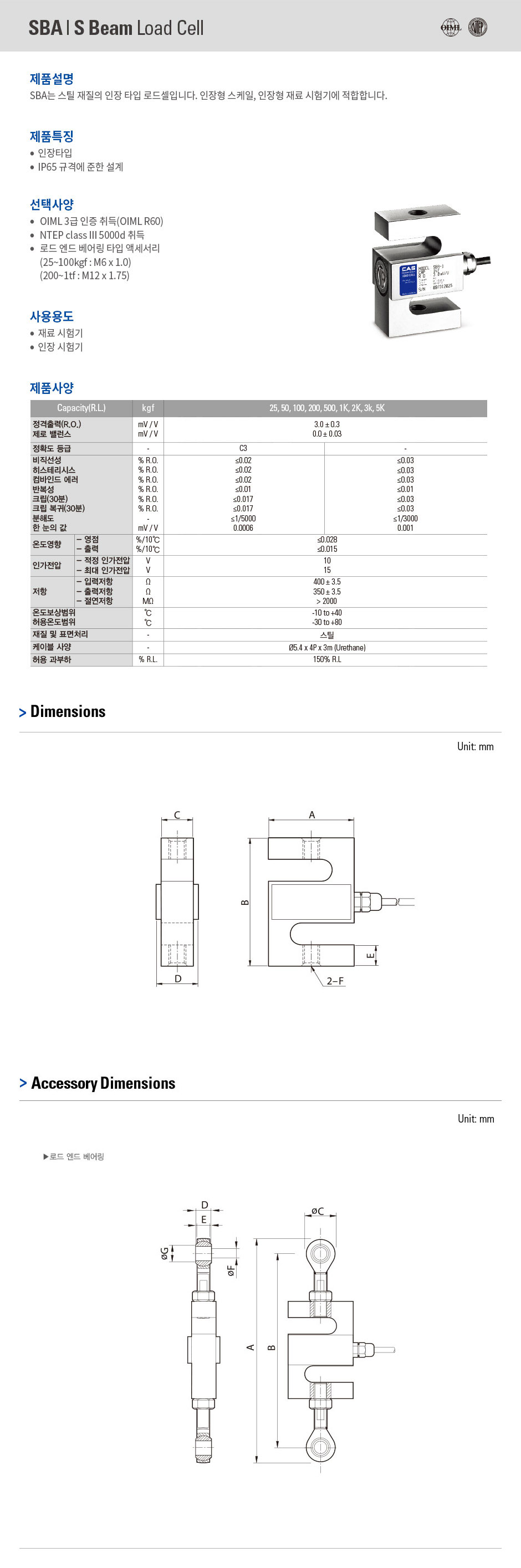 스틸 재질의 인장 타입 로드셀