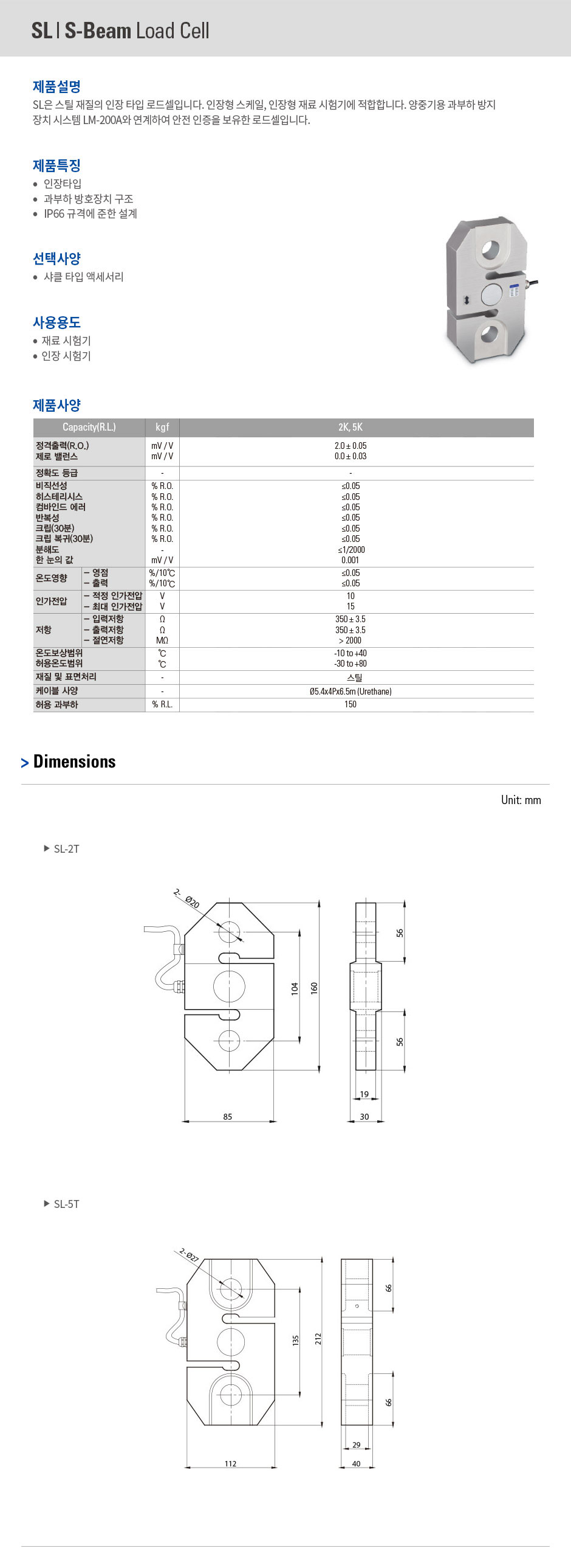 스틸 재질의 인장 타입 로드셀