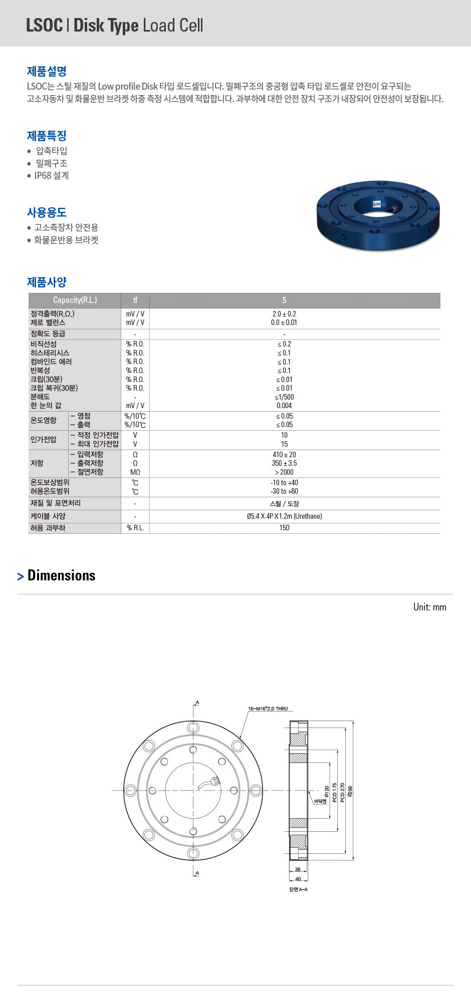 스틸 재질의 Low profile Disk 타입 로드셀