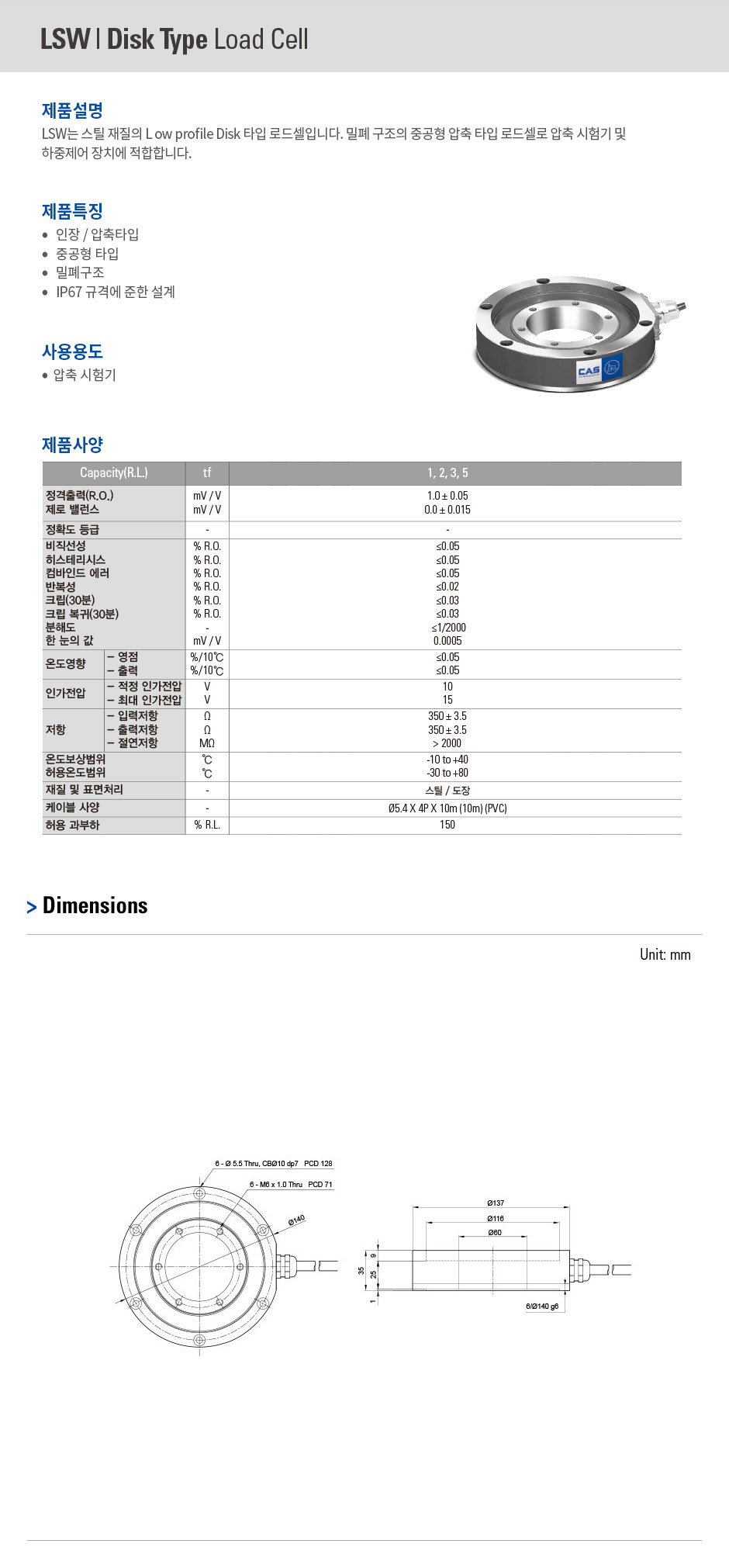 스틸 재질의 L ow profile Disk 타입 로드셀