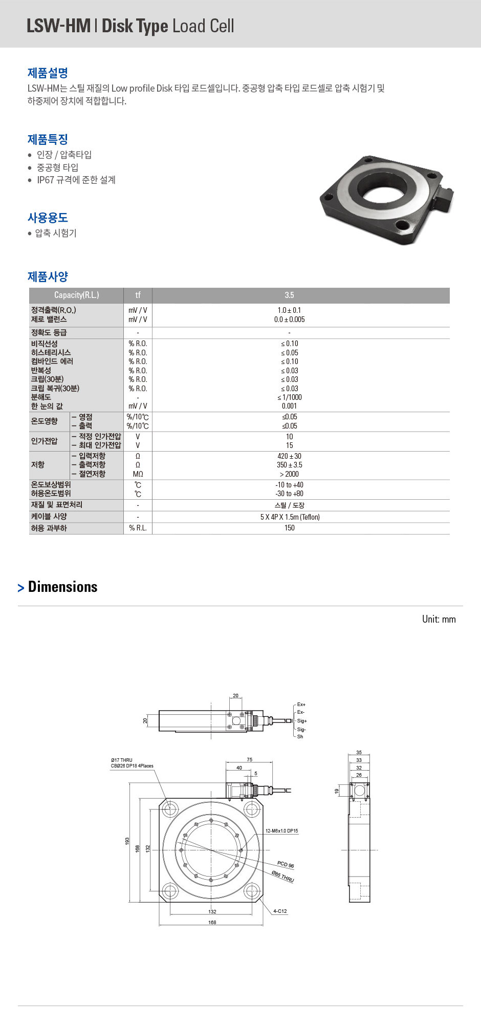 스틸 재질의 Low profile Disk 타입 로드셀