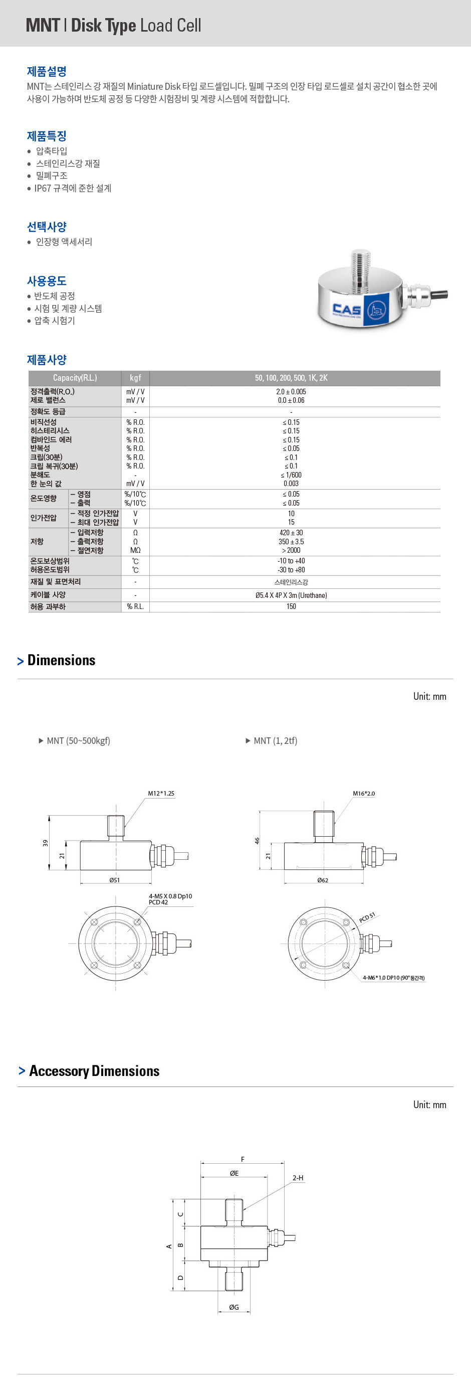 스테인리스 강 재질의 Miniature Disk 타입 로드셀