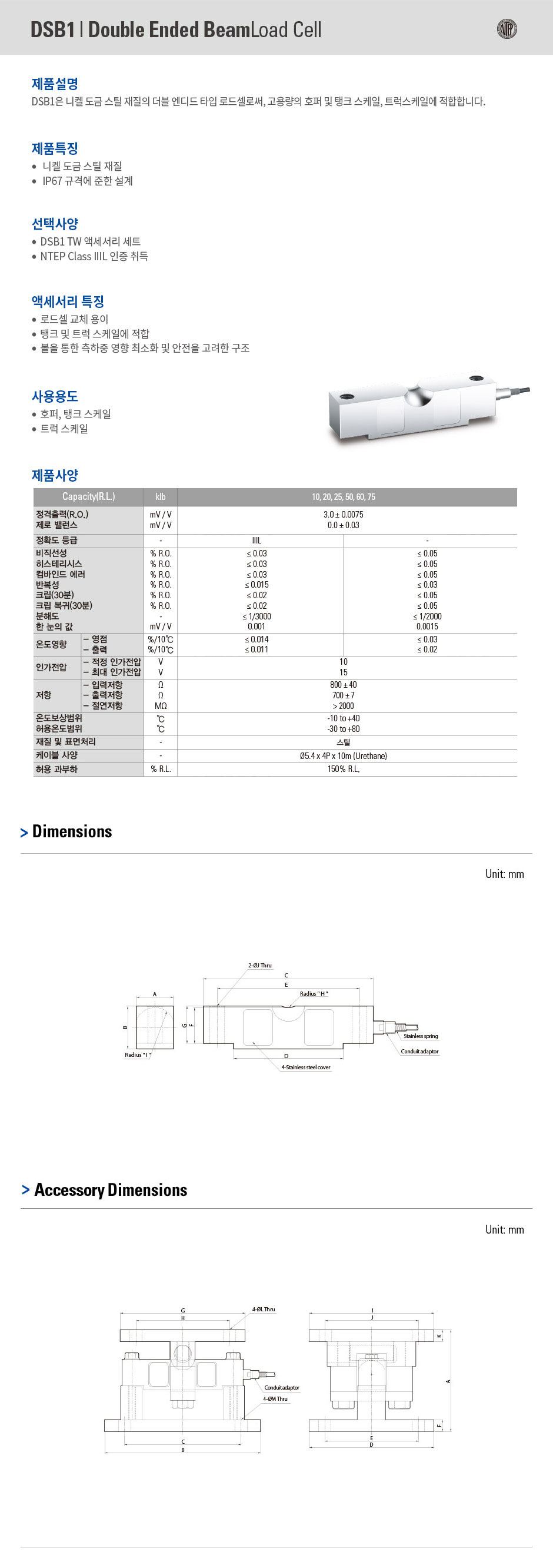 니켈 도금 스틸 재질의 더블 엔디드 타입 로드셀