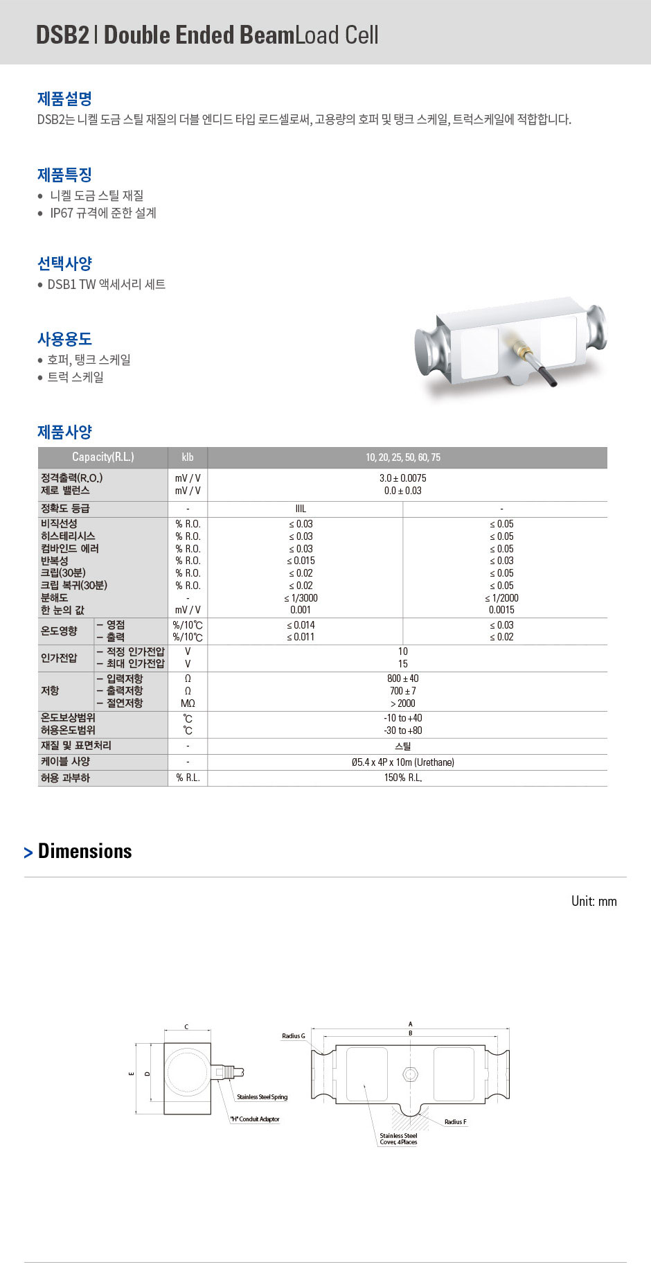 니켈 도금 스틸 재질의 더블 엔디드 타입 로드셀