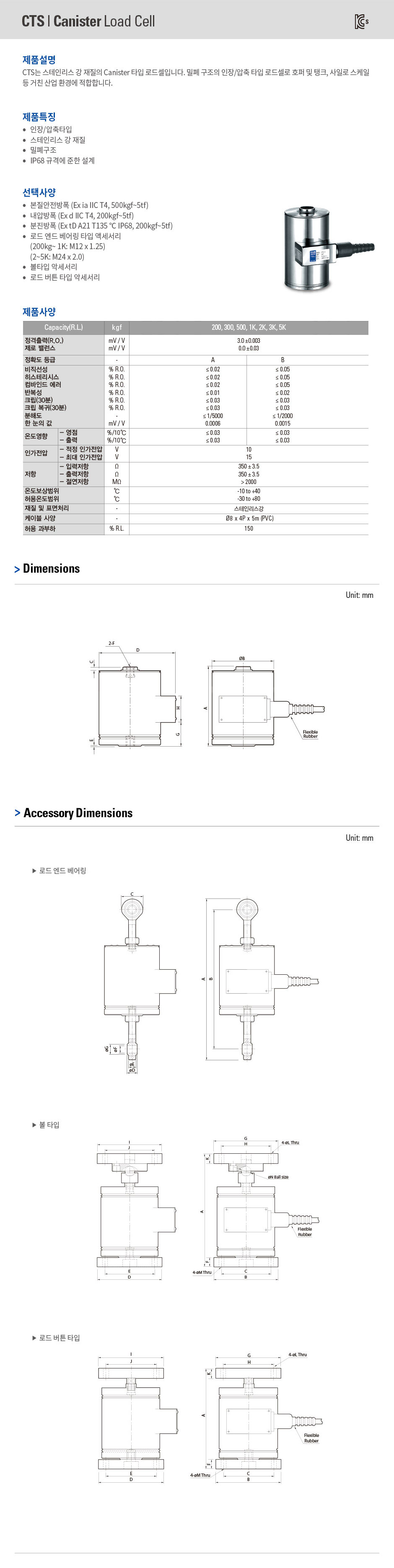 스테인리스 강 재질의 Canister 타입 로드셀