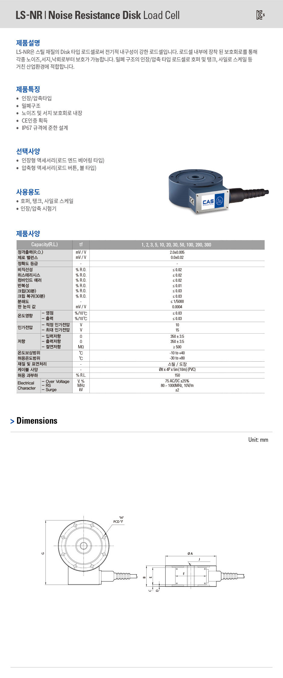 스틸 재질의 Disk 타입 로드셀