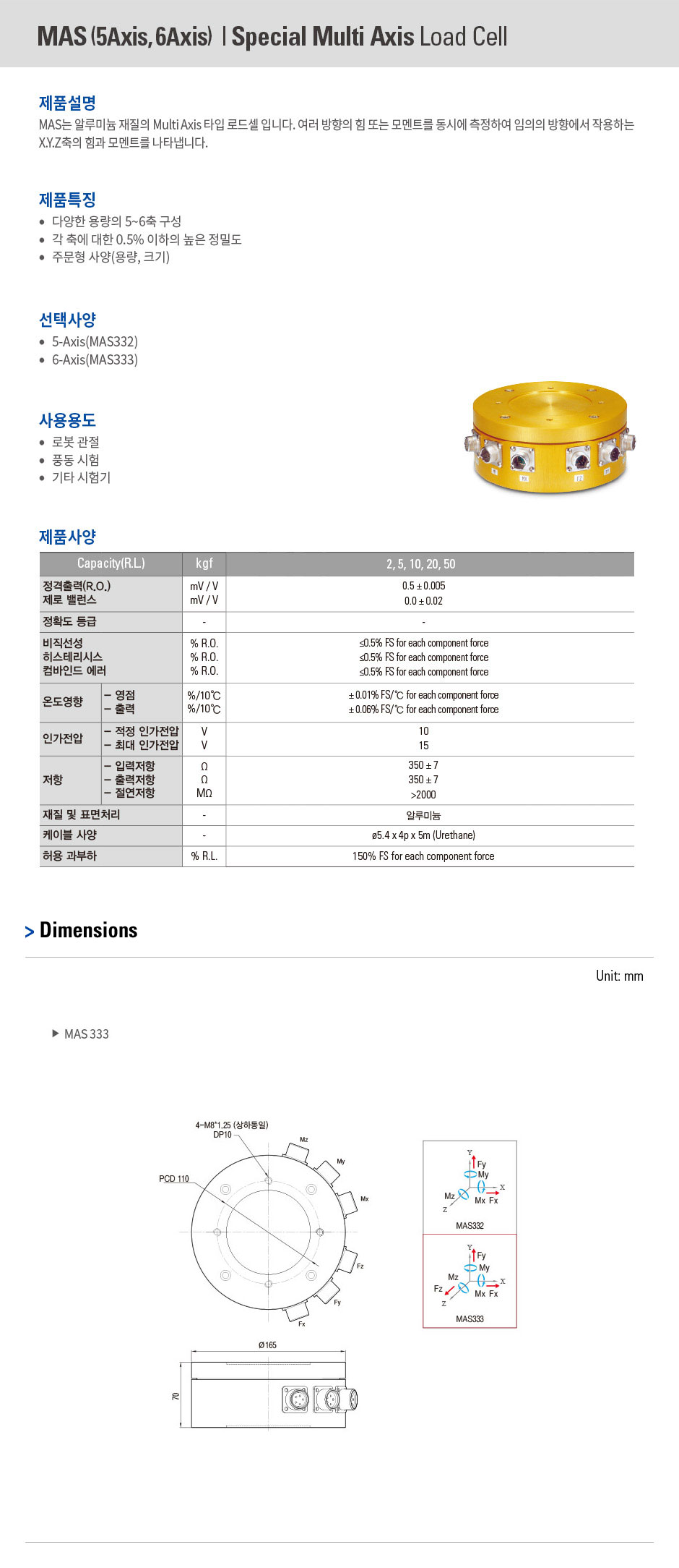 알루미늄 재질의 Multi Axis 타입 로드셀