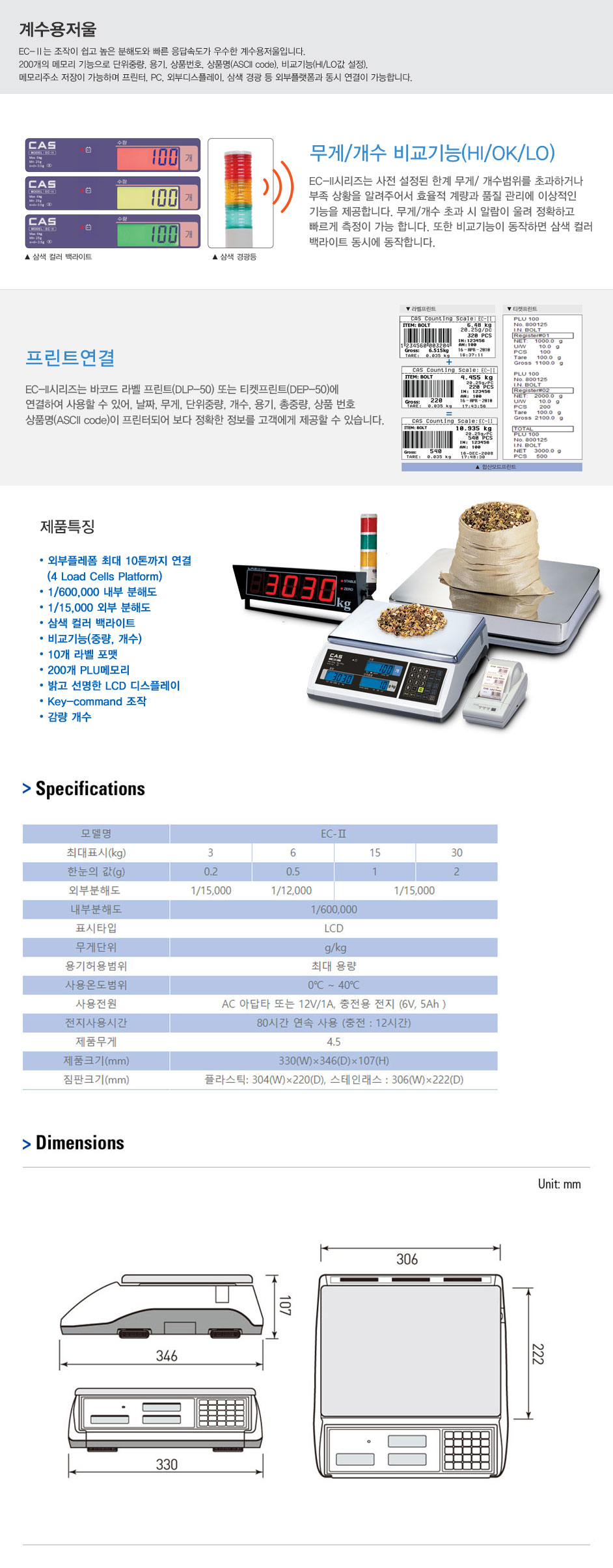 EC-Ⅱ는 조작이 쉽고 높은 분해도와 빠른 응답속도가 우수한 계수용저울입니다.