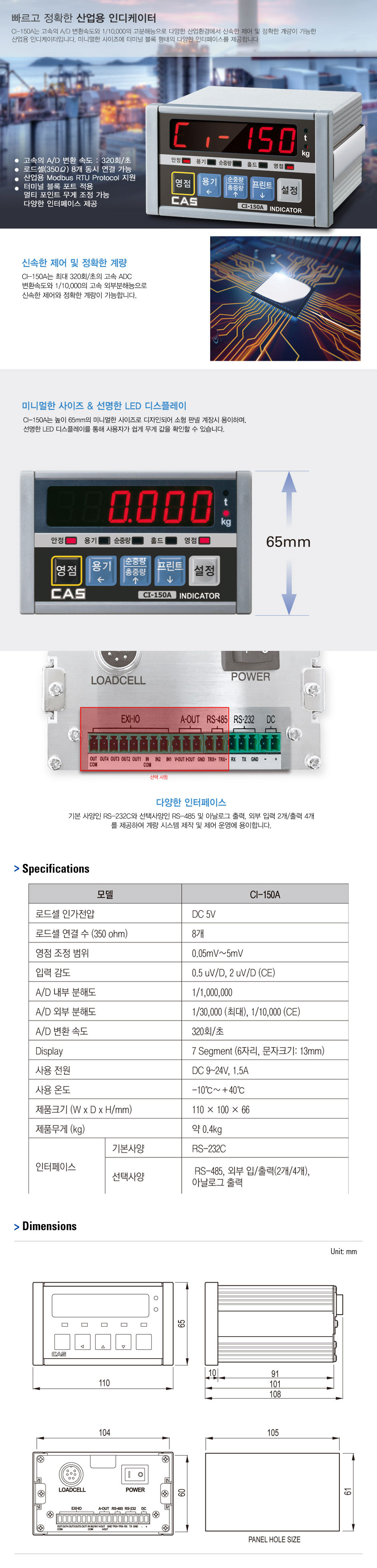 고속의 A/D 변환속도와 1/10,000의 고분해능으로 다양한 산업환경에서 신속한 제어 및 정확한 계량이 가능합니다.