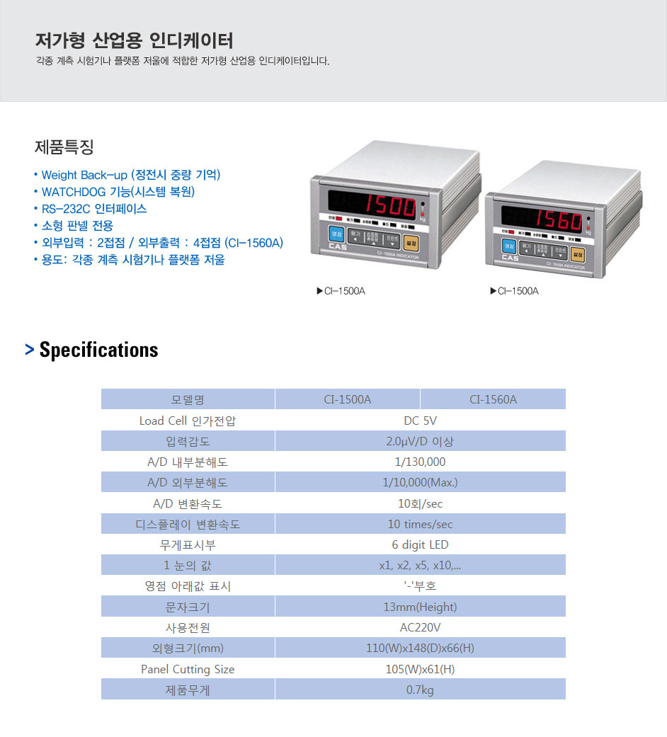 각종 계측 시험기나 플랫폼 저울에 적합한 저가형 산업용 인디케이터입니다.