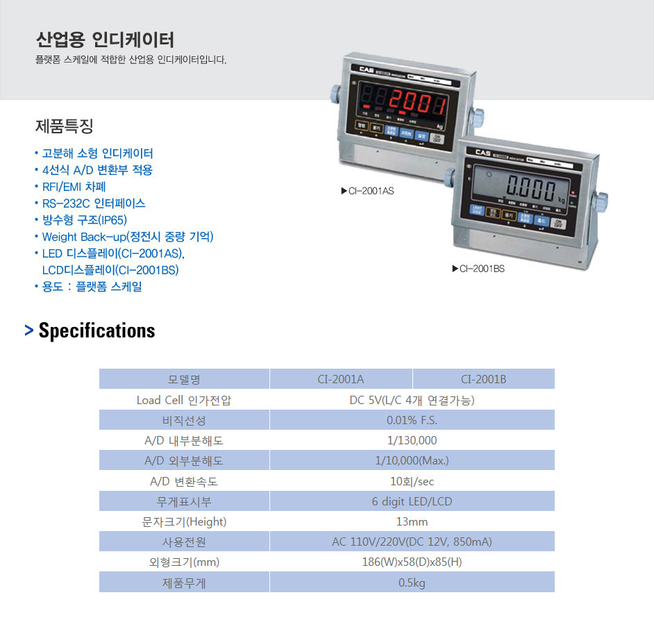 CI-2001A/B는 계측 시험 및 플랫폼 스케일에 적합한 산업용 소형 인디케이터입니다.