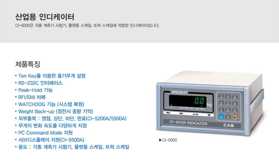 CI-5000은 각종 계측기 시험기, 플랫폼 스케일, 트럭 스케일에 적합한 인디케이터입니다.