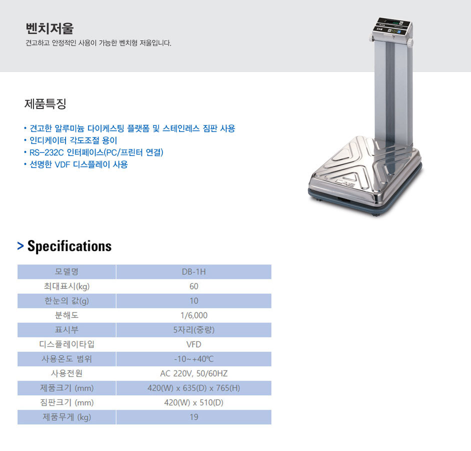 견고하고 안정적인 사용이 가능한 벤치형 저울입니다.