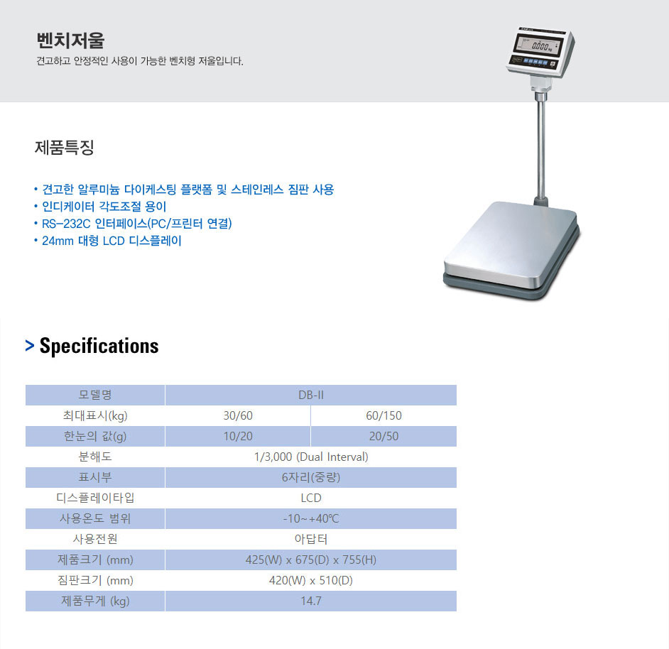 견고하고 안정적인 사용이 가능한 벤치형 저울입니다.