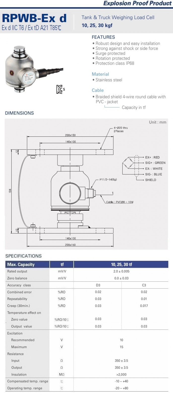 방폭트럭스케일/산업용 계량설비용 내압/분진방폭 로드셀