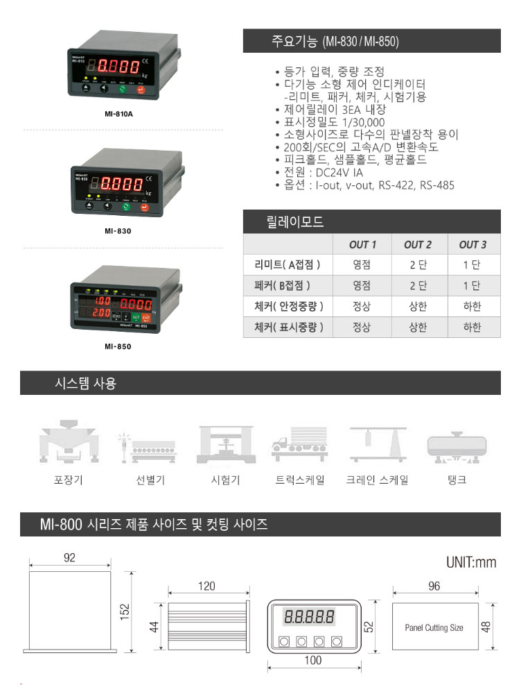 등가 입력, 중량 조정, 다기능 소형 제어 인디케이터