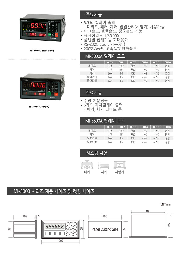 6개의 릴레이 출력 - 미리트, 패커, 체커, 압입관리 사용가능