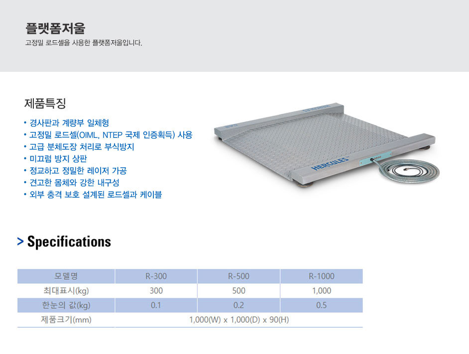 경사판과 계량부 일체형 플랫폼저울 ROLL-ON입니다.