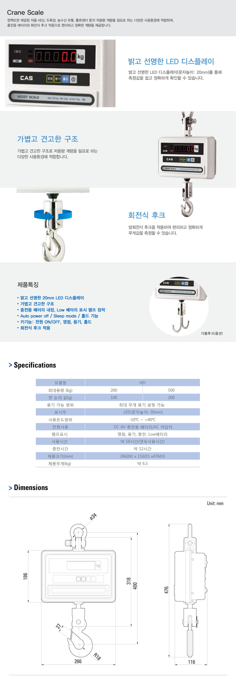 도축장, 농수산 유통, 물류센터 등의 저용량 계량을 필요로 하는 다양한 사용환경에 적합한 컴팩트한 매달림 저울입니다.