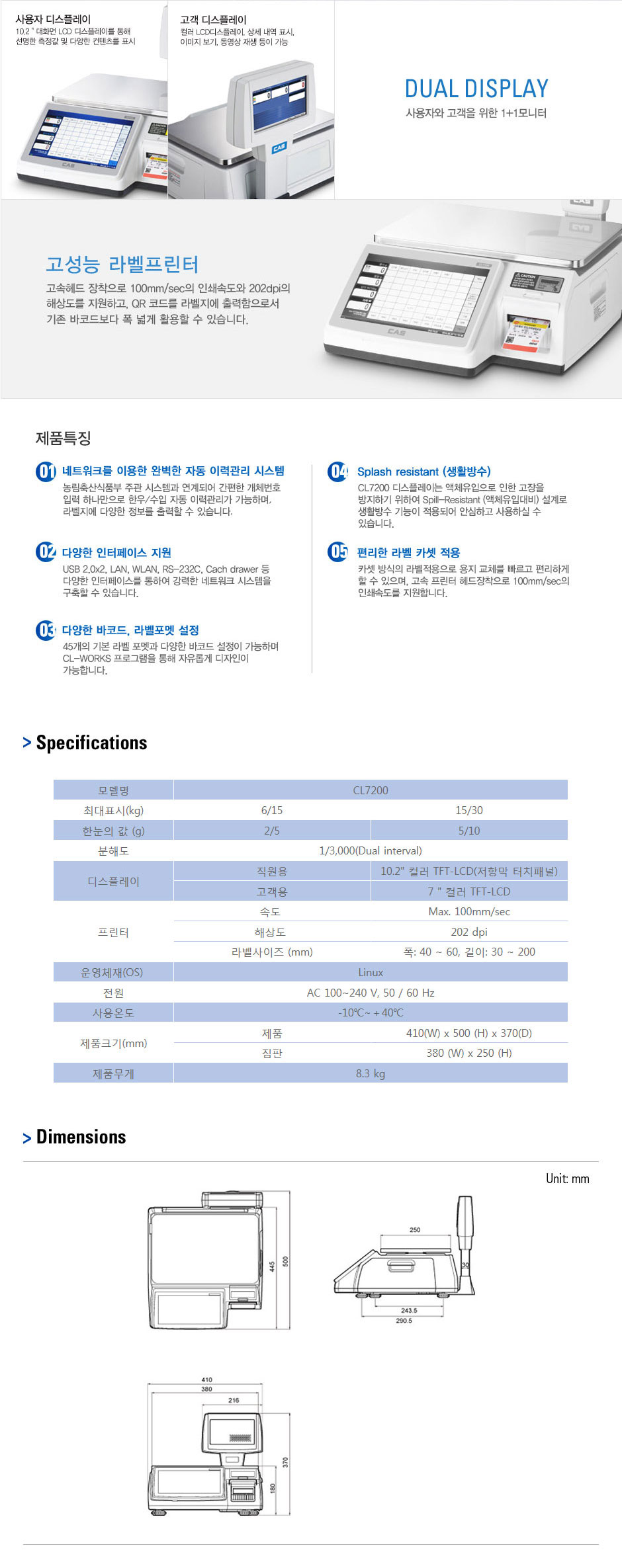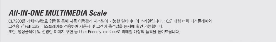 CL7200은 개체식별번호 입력을 통해 자동 이력관리 시스템이 가능한 멀티미디어 스케일입니다.